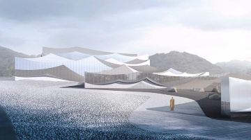 我们每个人都生活在这个宇宙之中,我们的宇宙由时间和空间构成。但是,你知道什么是时间吗?你知道什么是空间吗?一秒、一分、一小时、一天、一年是时间吗?地球、宇宙、外太空是空间吗?我想,也许不是。也许人生百年不过是宇宙间的“一念”,也许我们所拥有的一切不过是宇宙间的一粒尘沙。看似虚无飘渺的宗教理论,每每在我们的生活中有着极为具象的体现。《又见五台山》以五台山的佛教典故、仪规为创作基点,却又跳出单纯故事讲述的窠臼,打碎形式、打破空间,向无尽的时间发出探问,通过丰富和无穷变换的场景,汇解构一天、一年、一生、一念。依山势而建的“又见五台山”剧场,犹如一部打开的经卷。进入主体剧场之前,观众首先要经过长达730米的经卷,经卷上刻《华严经》经文,由高到低排列形成渐开序列,形成七个“经折”空间。当我们走进剧场,会认识一个叫曹慧芬的女人,认识一个叫小刘的送快递的小伙子,会认识许许多多仿佛生活在我们身边的人。我们所期待的,是佛教在五台山怎么与今天的生活结合在一起,怎么样讲述人生的故事,而不仅仅是阐述佛理……“又见五台山”剧场设计这是一个不是雕塑的雕塑,这是一个不是建筑的建筑;这是一个没有形状的建筑,这是一个正在消隐的建筑;这是一个可以聆听的建筑,这是一个可以对话的建筑;这是一个映照历史的建筑,这是一个启迪智慧的建筑……出于大型情景剧演出的需要,剧场空间是一个长131米、宽75米、高21.5米的大空间。然而,当你走近它,你却不能完整地了解它的全部。长730米,徐徐展开的“经折”置于剧场之前,由高到低排列形成渐开的序列,成为剧场表演的前奏。而剧场就成为了正在被打开一本巨大经卷,预示蕴藏着知识和智慧的宝库。“经折”和剧场采用了不同材质的表皮,包括石材、玻璃和不锈钢等材料,通过反射和透视,将体量化解为不同尺度的起伏的图案。混合材料的应用,以不同的方向影射着周围的景象,蓝天、白云、山峦、树木,也包括接近她的人,一切尽在似有与似无之间,极大地消解着建筑物的轮廓线,破解建筑体量对周围环境的压力。每一页被打开的“经折”空间都是独特的,通过当代装置艺术表现手法的运用,展现了一个个与宗教有关的小空间。这一多重演绎的“经折”借助于中国传统造园的方式,运用空问秩序建构内涵丰富的精神场所。让观众在一场场跌宕起伏的“经折”之间驻足凝思,展开自己与空间、与情景之间的对话,从而激发出观众的心理体验和精神感受。场地当中一石、一木的光影变幻,记录着一天的朝暮、一年的春夏秋冬,让人抛弃世间的杂念,开阔眼界和胸襟,感知佛陀的智慧。这不仅带来感官上的震撼,更多的将引发观者的思辨。在“经折”被“掀起”的部分,形成游人穿越的通道,呈现出的是中国传统木构建筑的细部构建,隐喻着建筑所处的人文环境。出挑的杆件端头悬挂的铜铃,发出清脆、悠扬的声响,在很远的地方即可感知这座建筑的存在。在接近景区道路的一端,“经折”以高反光的不锈钢顶面直接插入碎石的地面,突出了“经折”构造的力度和纯度,对日空和月夜的映照成为先映入观众眼帘的形象。同时,又将的华严经镌刻在不同材质的表皮材料之上,附会了“经折”的创意,向游人传递着演出的主题和内容。场地内的石材,全部取自忻州当地。无论是在前往剧场通道一侧的“经折”之内,28块“顽固不化”的巨石,还是离开剧场的通道一侧的“经折”之内,组成28个经文的、被“点化”的黑色石块,以及通道另一侧铺满景观场地的各色鹅卵石,无不隐喻着建筑的地域性特征。地址:忻州市五台县台怀镇五台山风景区南门(南线游客中心东100米又见五台山风铃宫)