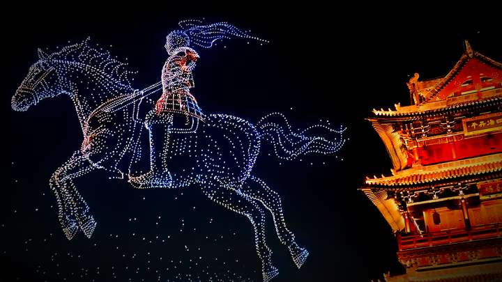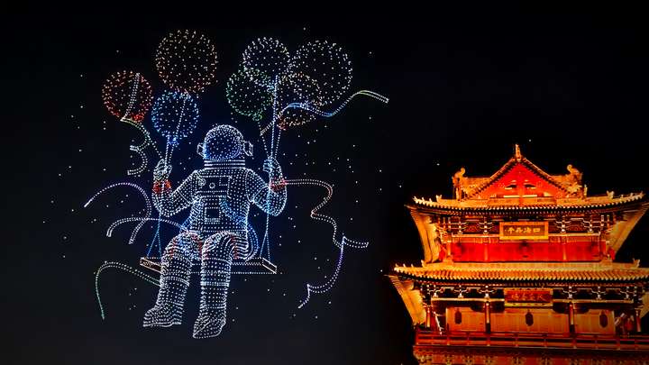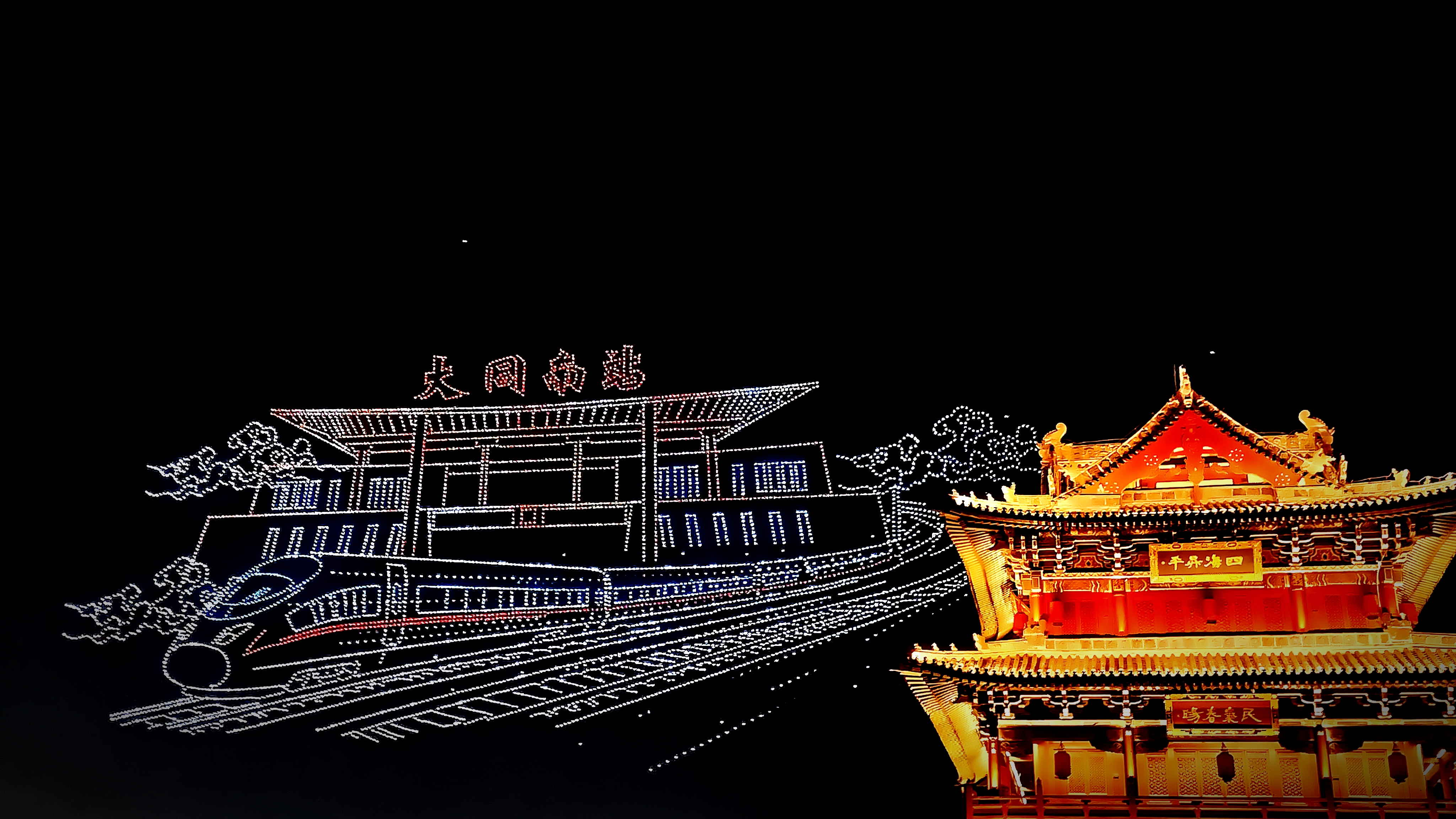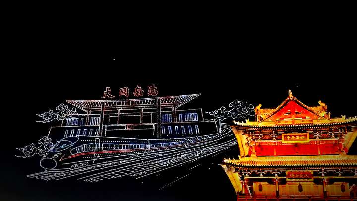 8000 架无人机点亮大同古城夜空 科技光影盛宴庆华诞