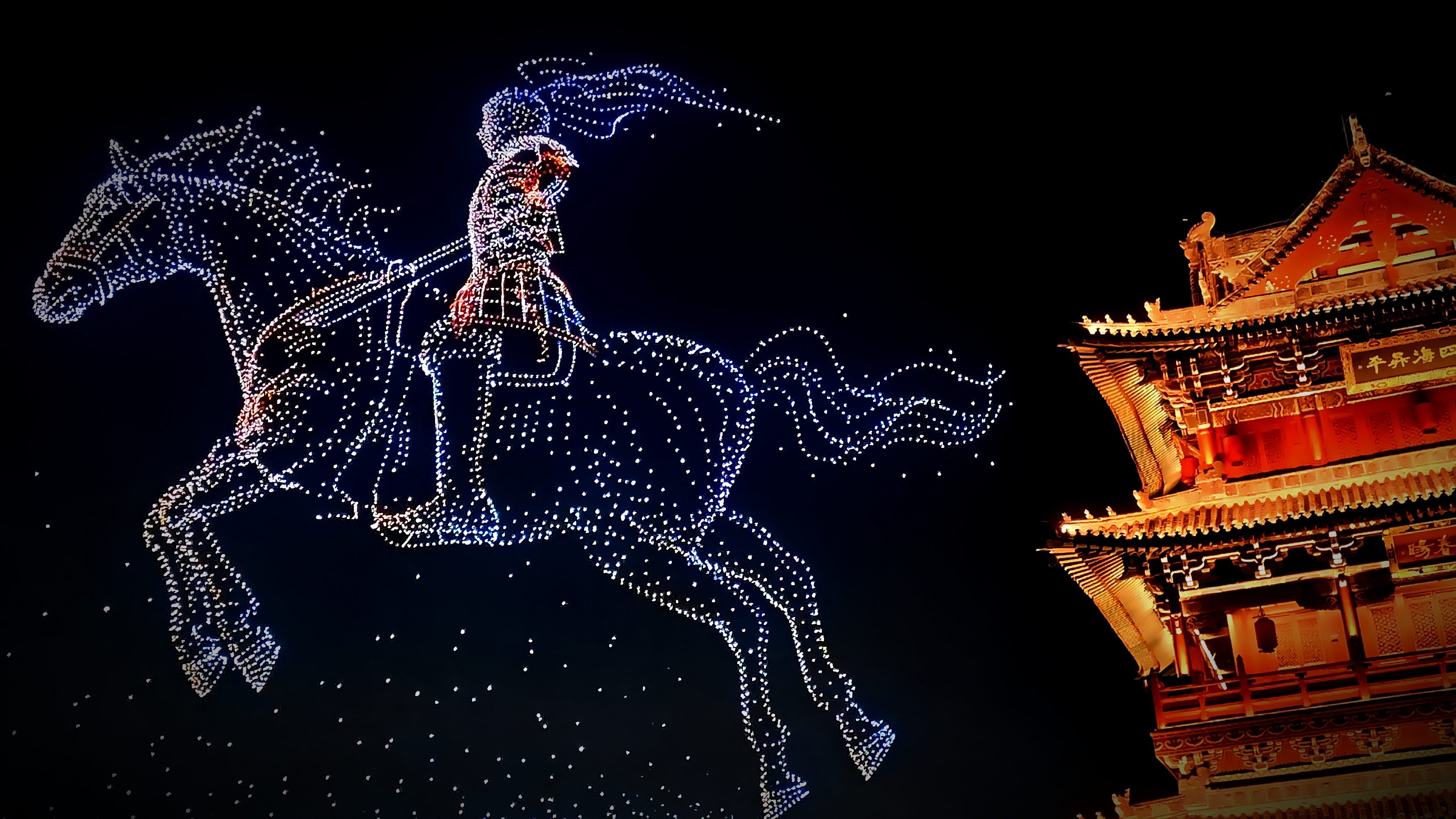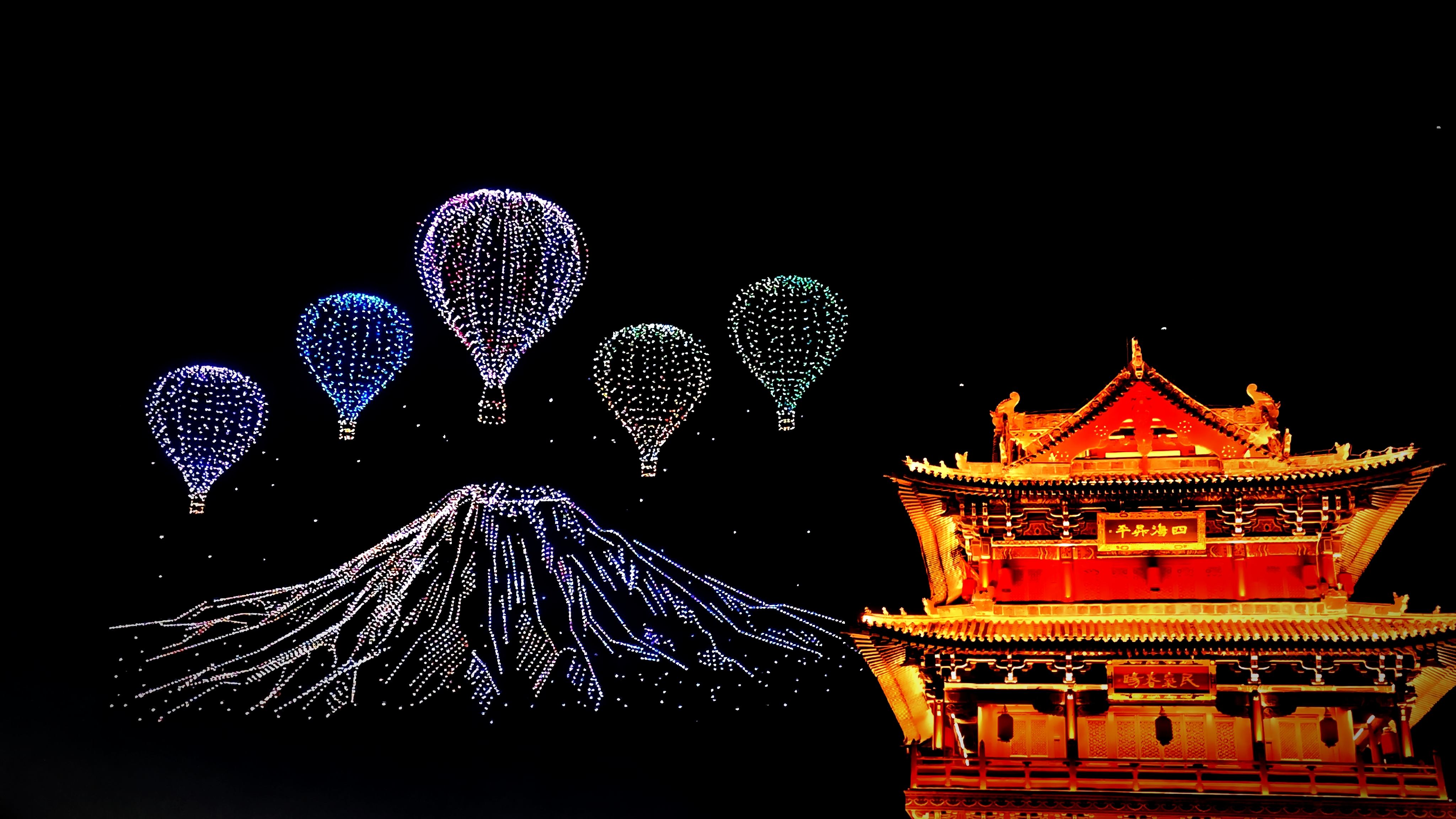 万人围观:古城夜空变身 “光影剧场”